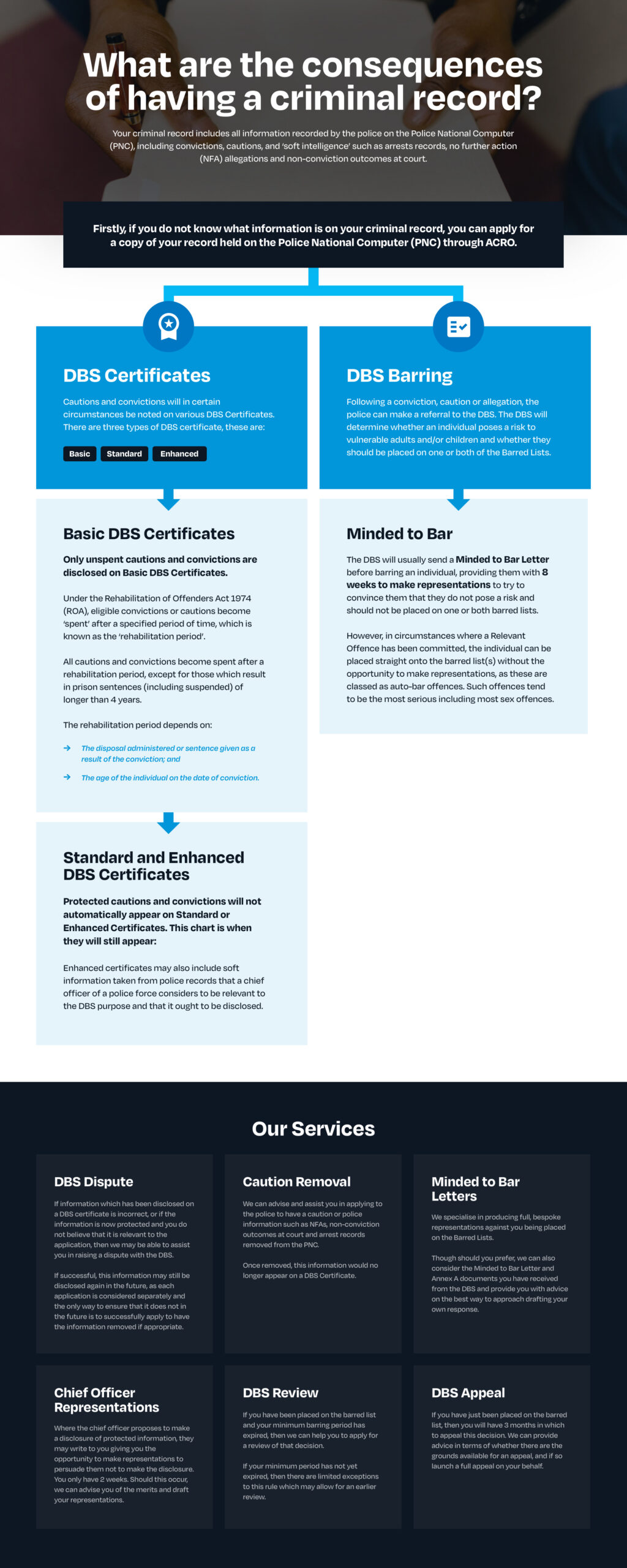 See the infographic below to learn more about the consequences of having a criminal record, DBS certificates, DBS barring and how our services can help.